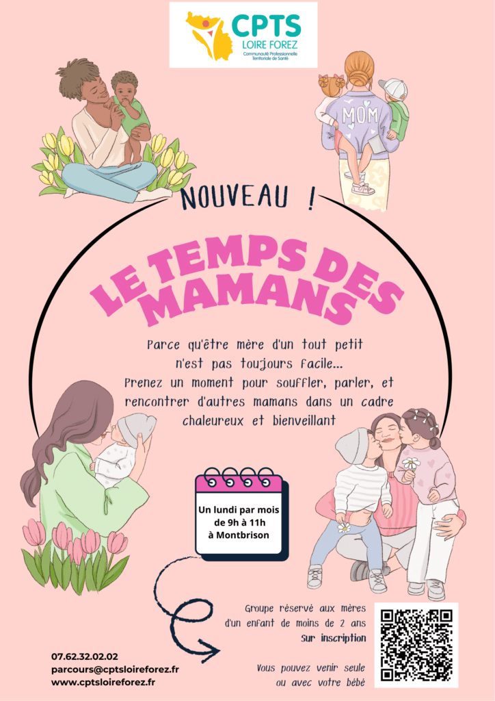 Groupe réservé aux mères d’un enfant de moins de deux ans, sur inscription obligatoire : https://www.helloasso.com/associations/cpts-loire-forez/evenements/le-temps-des-mamans